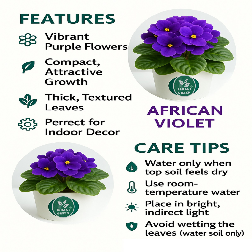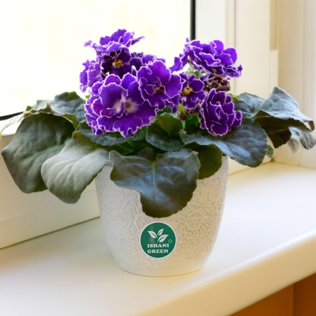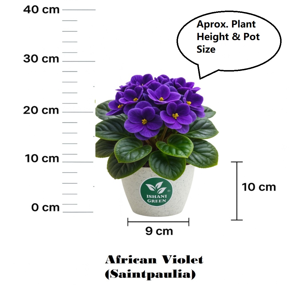 Ishani Green–Live African Violet (Saintpaulia)-Blooming Purple Flowers | Air Purifying-Remove Toxins | Low Maintenance | Indoor Beauty Compact Plant | Plant Height 15-30 cm with Pot
