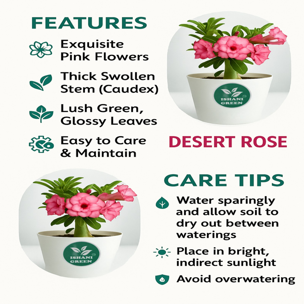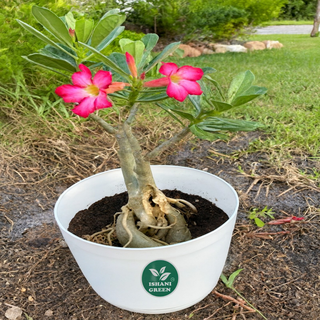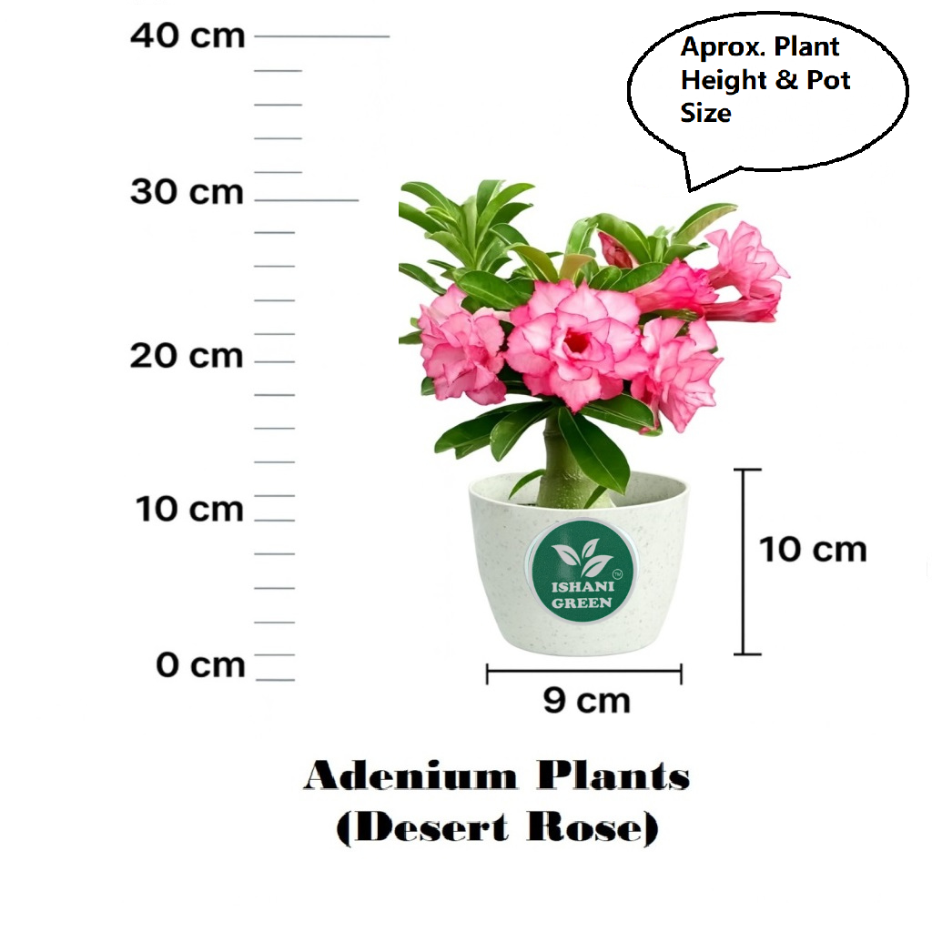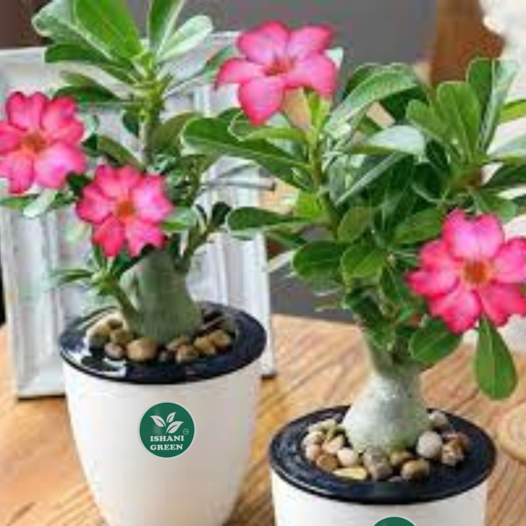 Ishani Green–Live Desert Rose (Adenium Obesum)-Exotic Blooming Succulent | Bonsai-Style| Air-Purifying | Low Maintenance | Indoor & Outdoor Beauty | Height 15-30 cm with Pot
