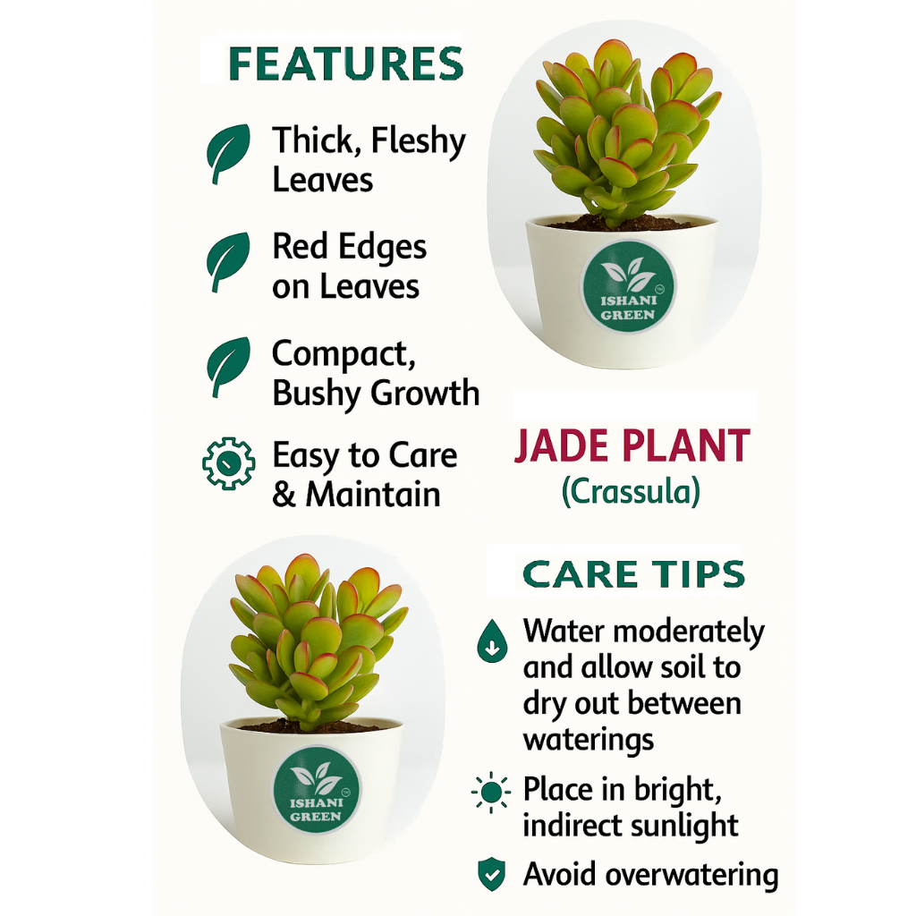 + Free ShippingIshani Green – Live Crassula Plant (Jade Plant) – Symbol of Wealth, Luck, and Prosperity | Perfect Indoor Plant for Positive Energy | Home-Office Decorative | Low Maintenance | Indoor-Outdoor | Height 6-10 inch In White Pot