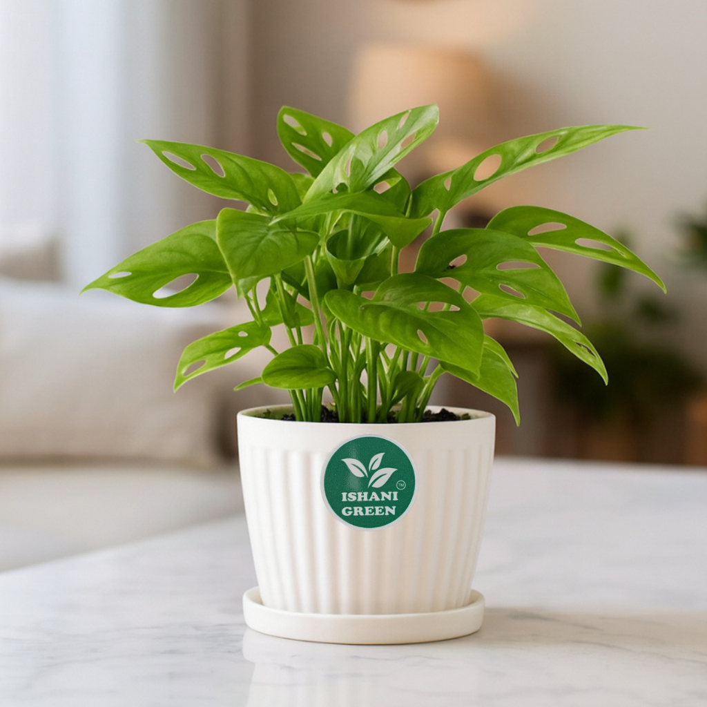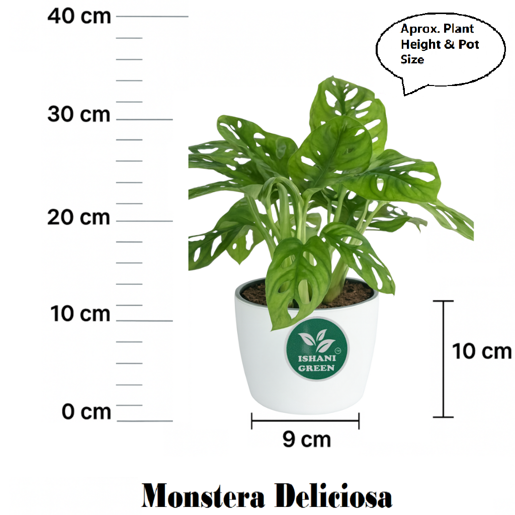 + Free ShippingIshani Green–Live Monstera Deliciosa (Swiss Cheese)-Iconic Split Leaves Climbing Plant | Air Purifying-Remove Toxins | Low Maintenance | Indoor & Outdoor Beauty | Plant Height 10-15 inch in White Pot
