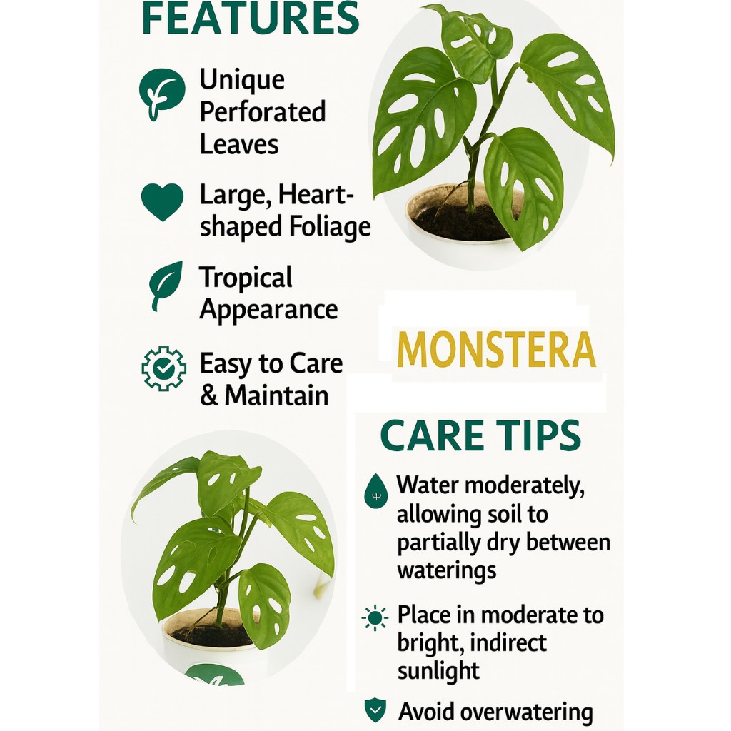 Known as a Swiss cheese factory, Monstera Deliciosa is an amazing tropical room famous for its large, glossy and fence leaves. Tropical forests in the central and South America grow rapidly and are loved by plant lovers with low services. Monstera is famous for its prosperity in the room with air characteristics, aesthetic charm and minimal treatment. Growth and growth. Monstera Deliciosa has a wide deep green leaf with natural holes or split, and occurs as the plant explodes. He has a habit of height, so he is ideal for climbing the tricks or poles of moss. Under favorable conditions, it grows up to 4-8 feet in the room to create magnificent and tropical atmosphere. Monstera Monstera Care & Mangeanceply can flourish in bright and indirect sunlight, but also have a light light. He prefers the election soil and must sprinkle water when the top inch of the soil looks dry. Avoid dressings to prevent root corruption. This plant benefits from any loss to maintain the level of humidity, and it uses light everyday modifications during the growing season. Air proposal and environmental advantages are plants that act as natural air control, and improves air quality in the room while absorbing toxins such as formaldehyde and benzene. It also contributes to a calm and comfortable environment, making it an excellent choice for housing and office. Symbolism and Feng -SHUI benefits Monstera Deliciosa symbolize growth, abundance and positive. Feng Shui is considered to attract prosperity and positive energy, which is an ideal plant in residential and jobs. is ideal for De Cor’s house and office in a bold and exotic appearance, and Monstera Deliciosa is a statement on living rooms, offices and commercial premises. It goes well with modern, tropical and Bohemian interior. Monster Deliciosa Monster is toxic because pets and people have calcium oxalate calcium crystals. Do not reach the hands of cats, dogs and young children.
