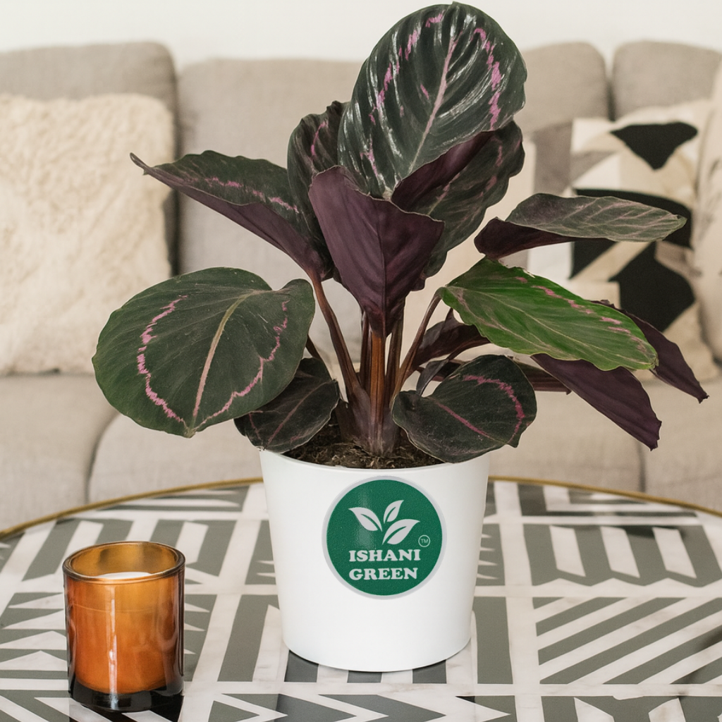 Ishani Green-Live Root Calathea Dottie (Roseopicta Rosy – Rare) | Luxurious Appearance | Air Purifier-Improve Oxgen Level | Desk & Table Top Decorative Plants | Plant Height 15-30 cm with Pot