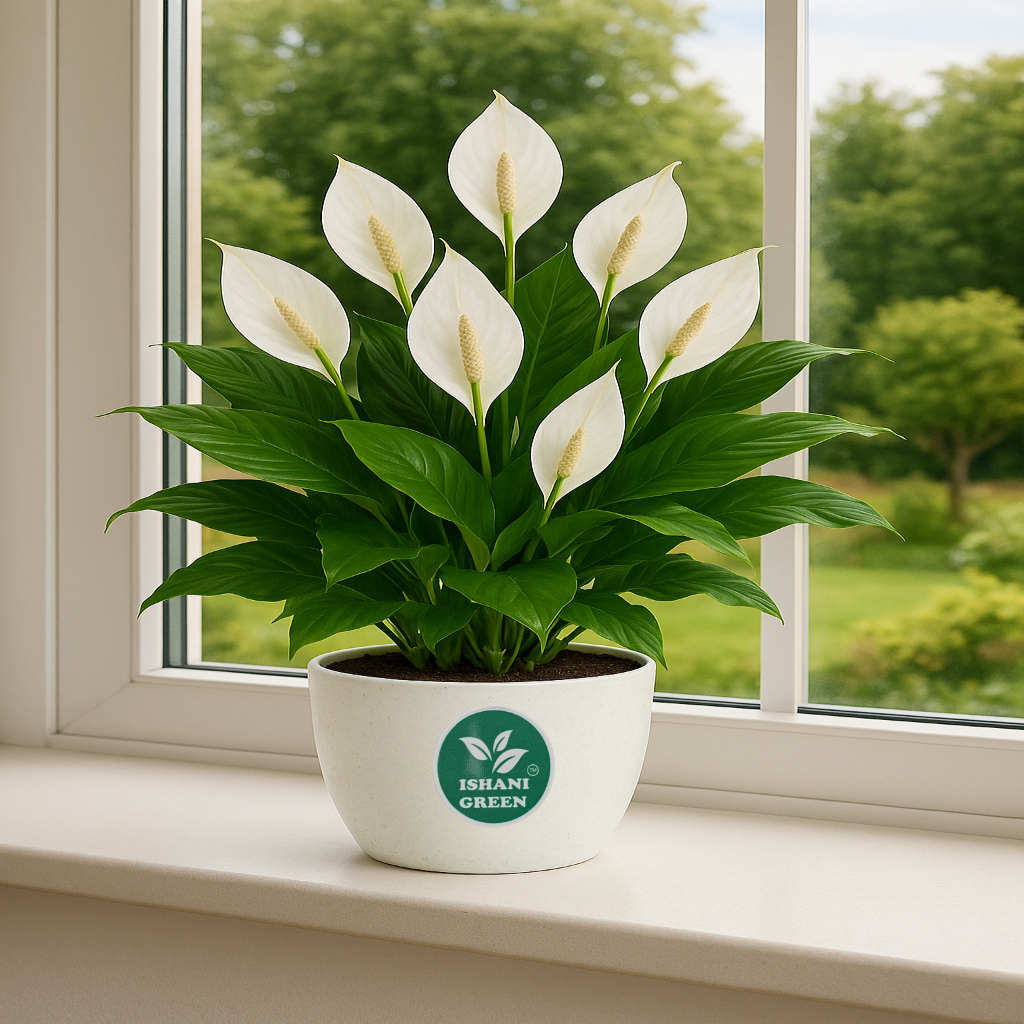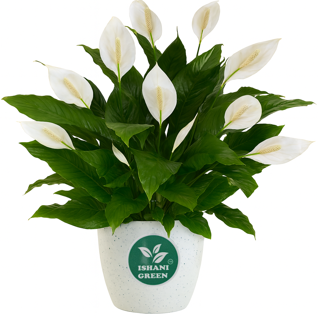 Ishani Green–Live White Lily (Lilium Candidum)-Blooming White Flowers | Air Purifying-Remove Toxins | Low Maintenance | Indoor Beauty Compact Plant | Plant Height 8-15 inch in White Pot